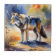 Wolf in a forest watercolor painting tile