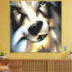 Wolf In Geometric Art Style is an abstract painting of a strong, endangered, wolf-dog. A wildlife theme featuring a charismatic husky animal. Ideal for wildlife lovers through zookeepers. This wild animal represents protection and loyalty,