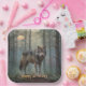 These birthday party paper plates feature a handsome wolf in a magical misty forest. Text can be changed or eliminated.