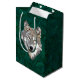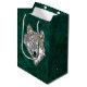 Beautiful wolf' head on a green background for these customizable gift bags.