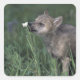 Wolf Puppy Sniffing Mountain Wildflower Square Sticker