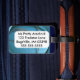 Big, old Striped Wolf spider has wrapped long legs on a blue patio chair arm.