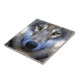Wolf Tile Coaster designed with a photograph of the face of a Grey Wolf.