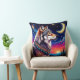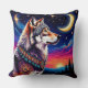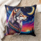 Wolf Under the Crescent Moon at Night Throw Pillow
