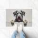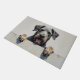 The soft stone grey background adds a timeless and elegant touch, perfect for welcoming entryways. Designed with extra space at the top and bottom, it allows easy personalization with names, welcome messages, or custom text—making it ideal for unique dog-themed doormats and thoughtful gifts.