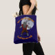 Night time is the right time to wolf down some candy. Fun Halloween tote bag with a werewolf standing in front of the moon.