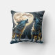 Wolves Howling Under a Full Moon in Winter Forest Throw Pillow
