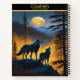 Under the luminous full moon, two majestic wolves stand atop a rocky outcrop in a serene forest