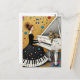 Woman and Cat at Piano Surreal Postcard