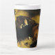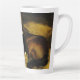 Latte Mug featuring Sir Edwin Henry Landseer’s oil painting The Shrew Tamed, or The Pretty Horsebreaker (1861). An elegant woman in black clothing lounges next to a beautiful brown horse. A small dog watches in the background. They all sit in a barn of hay. A perfect gift for horse lovers and Victorian art.