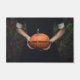 Woman Holding a Halloween Pumpkin Doormat