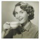 Woman holding cup, posing in studio, (B&W), portrait | George Marks | AssetID: 57520620
