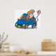 A woman in a car accident now standing next to her car. This design looks really effective on this Poster