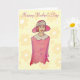 Delicate drawing of a woman wearing a wide brimmed pink hat and pink dress on a background of sepia flowers. Easily personalise this card by editing the template text.