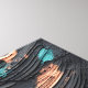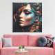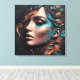 It is a captivating portrait of a beautiful woman. Set against a charcoal background, the abstract artwork showcases a blend of copper and turquoise hues, gracefully embossed to highlight perfect facial contours. Experience the mesmerizing beauty of this unique composition