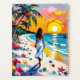 Add a touch of tropical beach to your organizational space with this gorgeous colourful personalized planner. A beautiful ai illustration done in an oil painting impasto style. A woman walking on the beach among palm trees, tropical flowers, turquoise waves, sea glass and seashells.