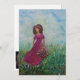 This greeting card depicting a young woman picking flowers in a field could be utilized in bridal/bride maid purposes, or general greetings from birthday to personal notes of thanks.