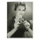Smiling woman holding playing cards in studio, (B&W), portrait | George Marks | AssetID: 57520357