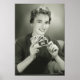 Smiling woman holding playing cards in studio, (B&W), portrait | George Marks | AssetID: 57520357