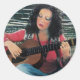 Woman Playing Music With Acoustic Guitar Classic Round Sticker