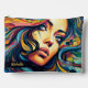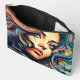 This is a fun accessory pouch in a pop art style of a woman's face in vibrant colours. This pouch can be used for a variety of things such as a makeup bag, travel kit, pencil case and more. The name on the pouch is customizable and would make a fun personalized gift.