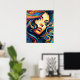 This is a fun poster in a pop art style of a woman's face in vibrant colours to decorate your room, living room, office with.