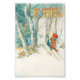 Woman in the birch trees putting on her cross country skis. Vintage fine art watercolor by Swedish painter Carl Larsson.