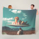 Woman Relaxing on UFO in Desert Fleece Blanket