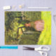 This design features a painting by the English artist Sir John Everett Millais, who was one of the founders of the Pre-Raphaelite Brotherhood. In the painting, a young woman, the central figure, is depicted seated on wooded steps in a verdant, natural setting, possibly a garden or a meadow, with an expression that suggests she is deep in thought. Her gaze is directed off into the distance, perhaps waiting for someone or something that holds great significance in her life. The delicate play of light and shadow on her face adds to the atmosphere of quiet introspection. The young woman is wearing a pink flowing dress and bonnet. Her posture, slightly leaning back with her arms gently clasped, further enhances the sense of her waiting and yearning. The image invites viewers to ponder the story behind the woman's patience and the emotions she might be experiencing. Millais captures a universal human experience, making the painting resonate with anyone who has ever felt the pangs of anticipation. The painting is a testament to Millais' ability to blend technical brilliance with profound emotional expression. The original work was painted by John Everett Millais in 1854.