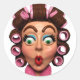 Clay figure of woman wearing curlers made using polymer clay that is baked in an oven and painted with acrylics. The final product is photographed and digitally enhanced.