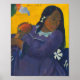 Woman with Mango (1892) by Paul Gauguin is a captivating depiction of a woman holding a ripe mango, rendered in Gauguin's signature post-impressionist style. The subject of the painting is a Polynesian woman, her posture graceful as she gazes at the viewer while cradling the mango in her hands. The rich, warm colours of the fruit contrast beautifully with the woman's skin tone, drawing attention to the harmony between the human form and the natural world. The background is simplified, allowing the viewer to focus on the intimate connection between the woman and the fruit. The work reflects Gauguin's fascination with Tahitian culture and his exploration of exoticism, blending symbolic elements with a striking use of colour.