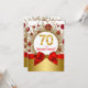 Woman's red and gold seventieth birthday party invitation with red and gold glitter dots and star burst. This beautiful red and gold birthday party invitation is easily customized for your event by simply adding your details in the font style and colour and wording of your choice. This is a printed design with no real jewels, glitter, bows, etc. You can remove the gold layer from the front and back and add a background colour of your choice.