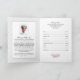 A beautifully designed funeral program featuring a grey damask background on the front highlighted with a pink water-colour flower bouquet to highlight the photo. Customizable to suit your needs.