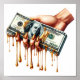 womans hand 100 dollar bill liquid gold dripping poster