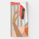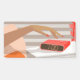 Womans hand pushing on alarm clock snooze button banner