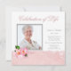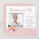 Elegant pink cherry blossom photo celebration of life memorial service announcements, invitation and insert template. This pretty pink photo womans funeral service invitation is easily customized for your event by simply choosing the "Customize it!" button to begin adding your event details, font style, font size & colour, and wording. Please note - all of the stickers, cards and invitation designs you will find on Zazzle are printed graphics with no actual jewels, bows, raised, embossed, or added parts or pieces.