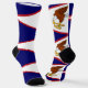 Crafted with meticulous attention to detail, these socks are more than just a fashion statement; they're a celebration of American Samoa's unique cultural heritage. The design proudly showcases the blue field with a white star and a red and white stripe, symbolizing the territory's connection to the United States and its Pacific island identity.