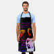 Two women stand close, playfully engaging while wearing BBQ aprons that creatively highlight their personalities. The warm atmosphere captures the joy of their connection, showcasing a touch of humour and affection.