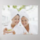 Women in bathrobes drinking tea at spa poster