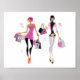 The perfect design for anyone who likes shopping. This has two women who have been shopping. They are both walking along holding a number of shopping bags. This women shopping design looks great on this poster. Perfect for yourself or as a gift