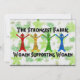 A rainbow of women with hands connected illustrate the words "The strongest fabric, women supporting women." Show your woman power as a piece of this powerful weaving.