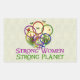 A rainbow of women symbols, a full moon, nature, and the words "Strong Women, Strong Planet" sends a message that strong women working together to empower all women can change the world and make it a better planet.