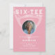 Hit a style hole-in-one with this women’s birthday invitation featuring a playful “Six-Tee (and still on par)” golf theme. Set against a cheerful pink backdrop, this fun and feminine design highlights a bold golf club and tee illustration, with space to personalize the golf ball with a photo of the birthday honoree. The back continues the sporty vibe with a coordinating golf club graphic. Ideal for milestone celebrations, especially for golf-loving ladies turning 60—or any age worth celebrating in style. Fully customizable with your party details for a personal touch.