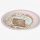 This plate has a Bible surrounded by a wreath of pink flowers in a wreath with a pink striped background with text that says "Women's Bible Study"