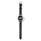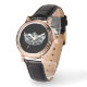 Womens black leather strap watch shown with a pageant queens crown print on a black face. Customize this watch or buy as is.