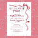 Create a lasting impression with our sophisticated women’s retirement party invitations. "Retirement Party" and party details are elegantly scripted in a modern serif font on a white background, enhanced with a bright, long pink bow in the corner. Easily customize the name, date, address, and RSVP details. The back continues the elegant theme with the same border and pink bow, offering additional information space. Perfect for family and corporate organizers. Make her retirement celebration unforgettable—get your modern, elegant invitations today!