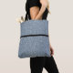 This tote bag is shown with a fun Denim-Silver Blue faux glitter print and a black stripe.