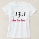 Our fun Women's Half Marathon Long Sleeve T-Shirt is a fun gift idea for a friend who has taken up running. Design features text in light teal, black and red: I Can Run 13.1 And I'm Done!