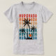 Women's Hurghada T-Shirt for looking cool on vacation in Egypt. This summer design features the word "Hurghada" repeated in vintage Retro colours with sunset palm trees.