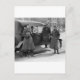 Old World War One photo of three women soldiers in uniforms and trench coats standing by official automobile.